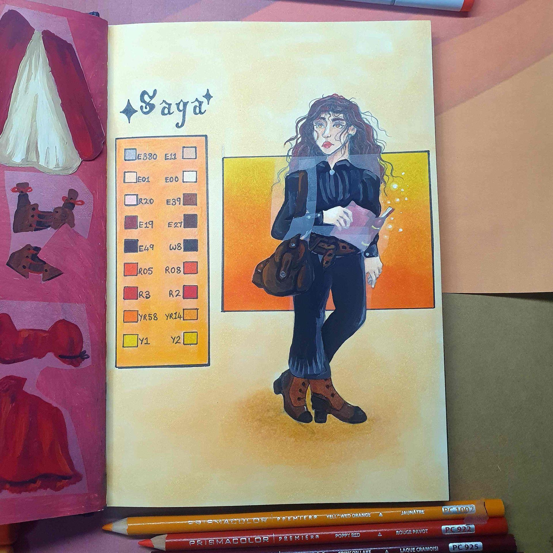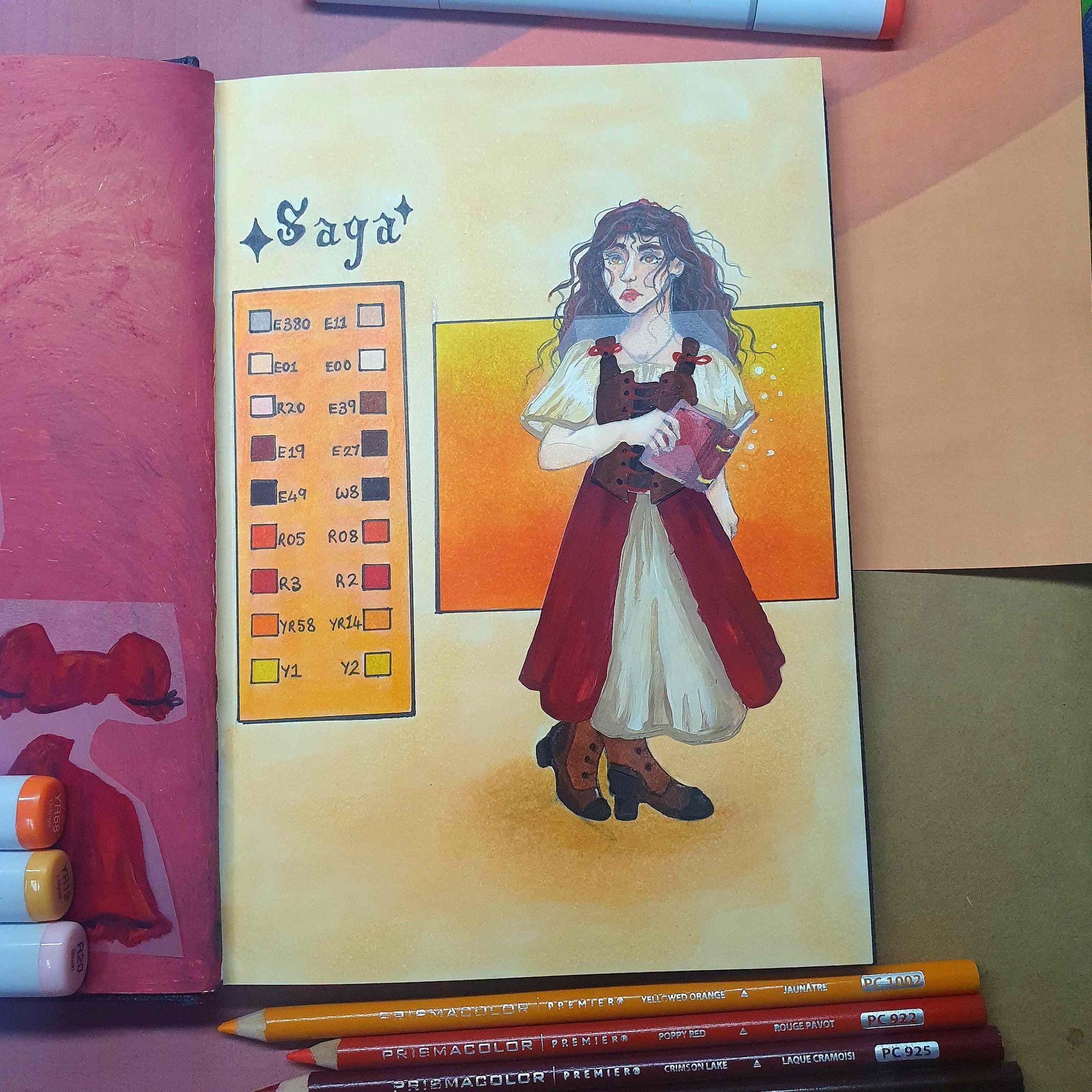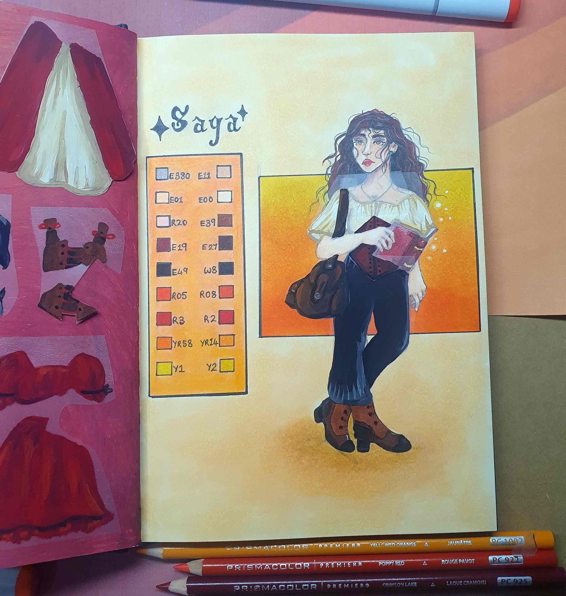 As an artist and a writer, keeping track of ideas and concepts is very important. Designing outfits for my characters can be very tricky since I need to find a balance between something practical and something that matches my character’s personality. This illustration features my main character, Saga.