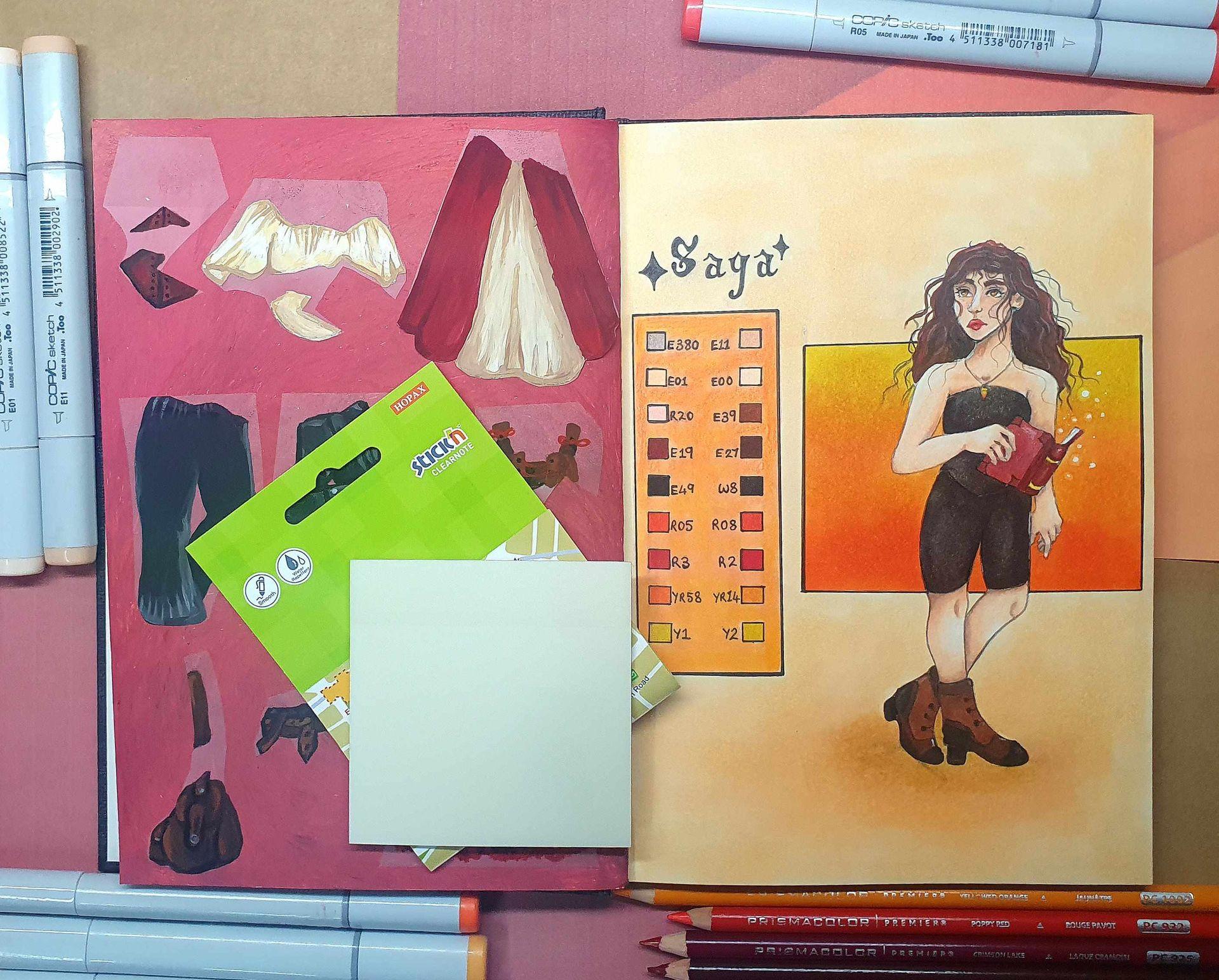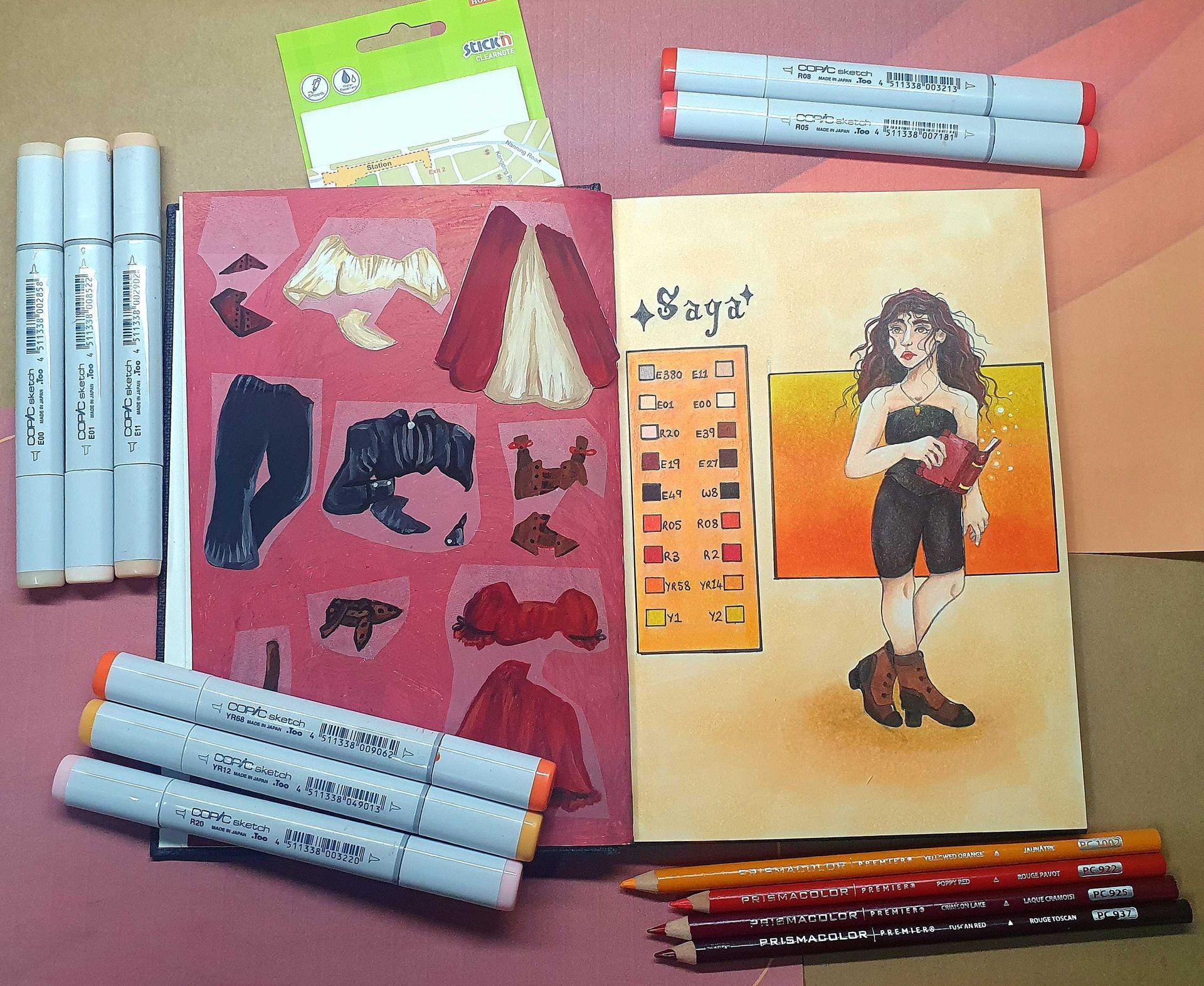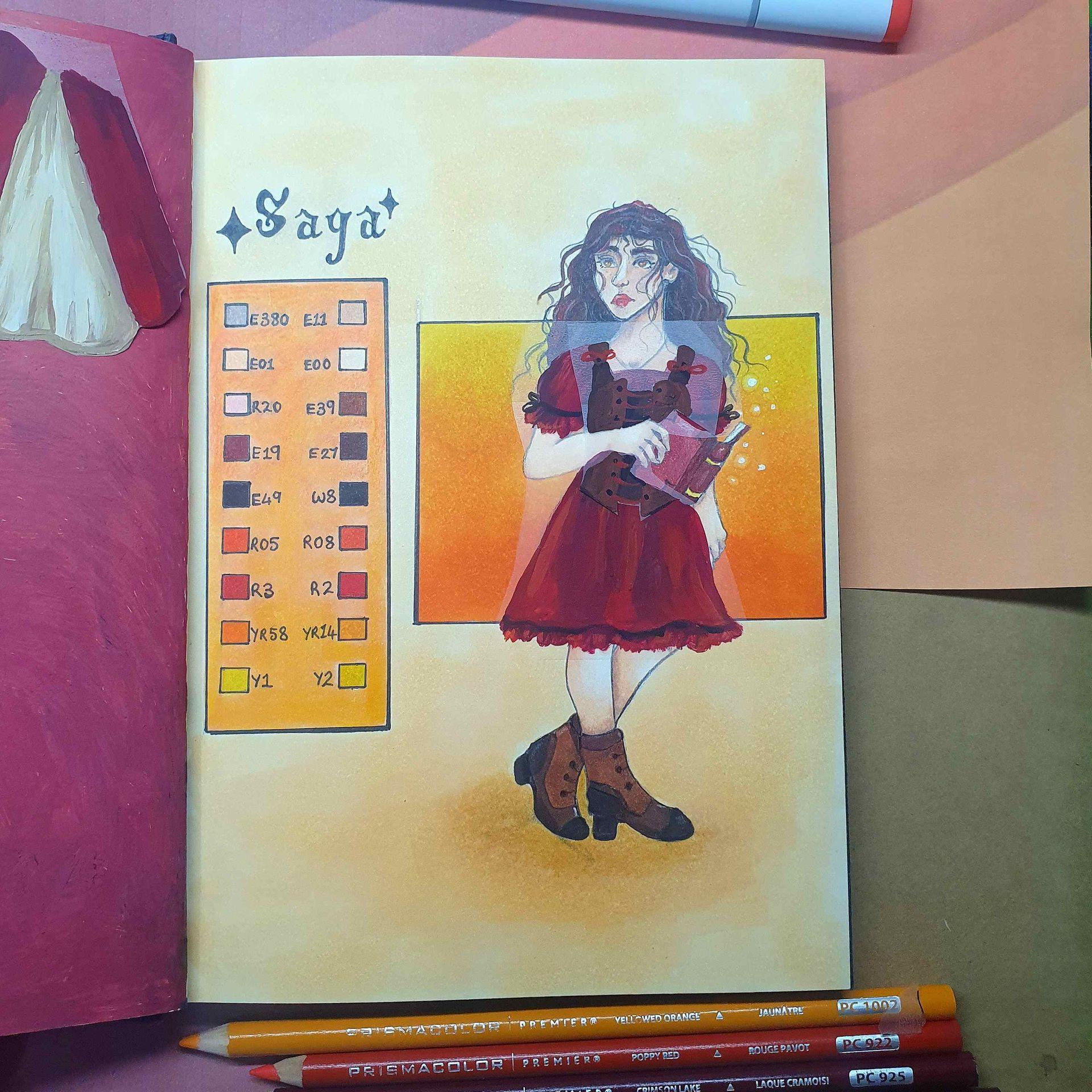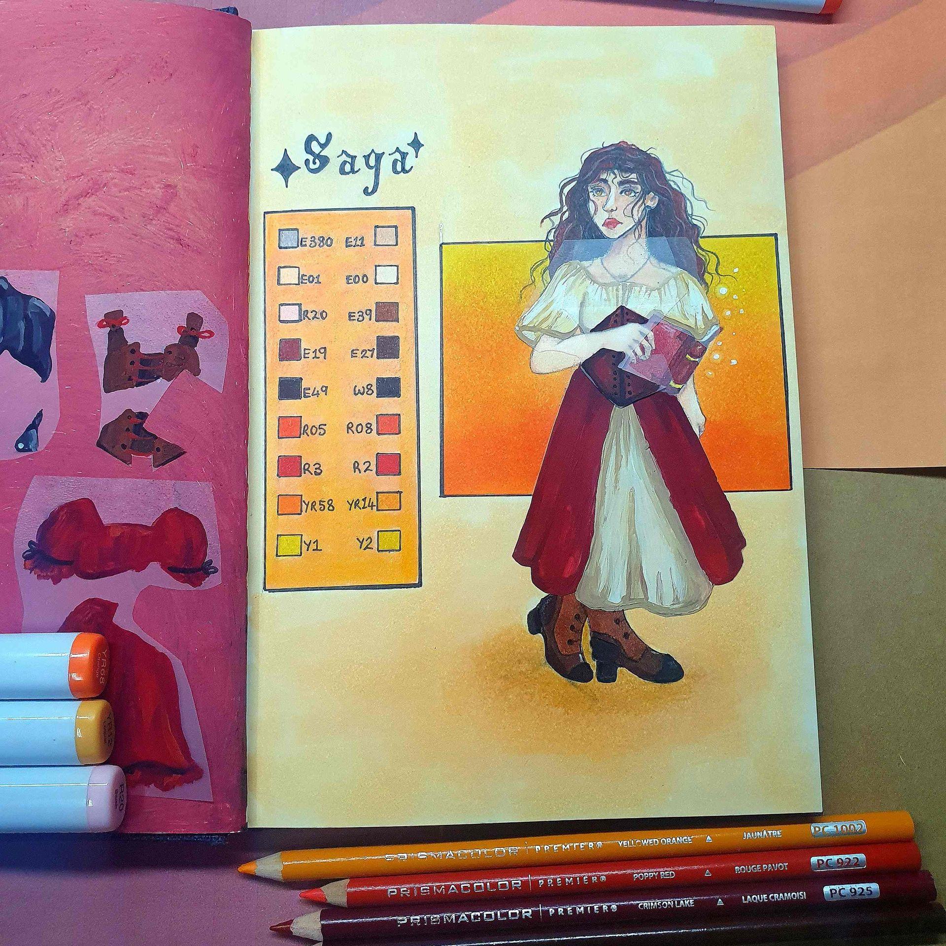 As an artist and a writer, keeping track of ideas and concepts is very important. Designing outfits for my characters can be very tricky since I need to find a balance between something practical and something that matches my character’s personality. This illustration features my main character, Saga.